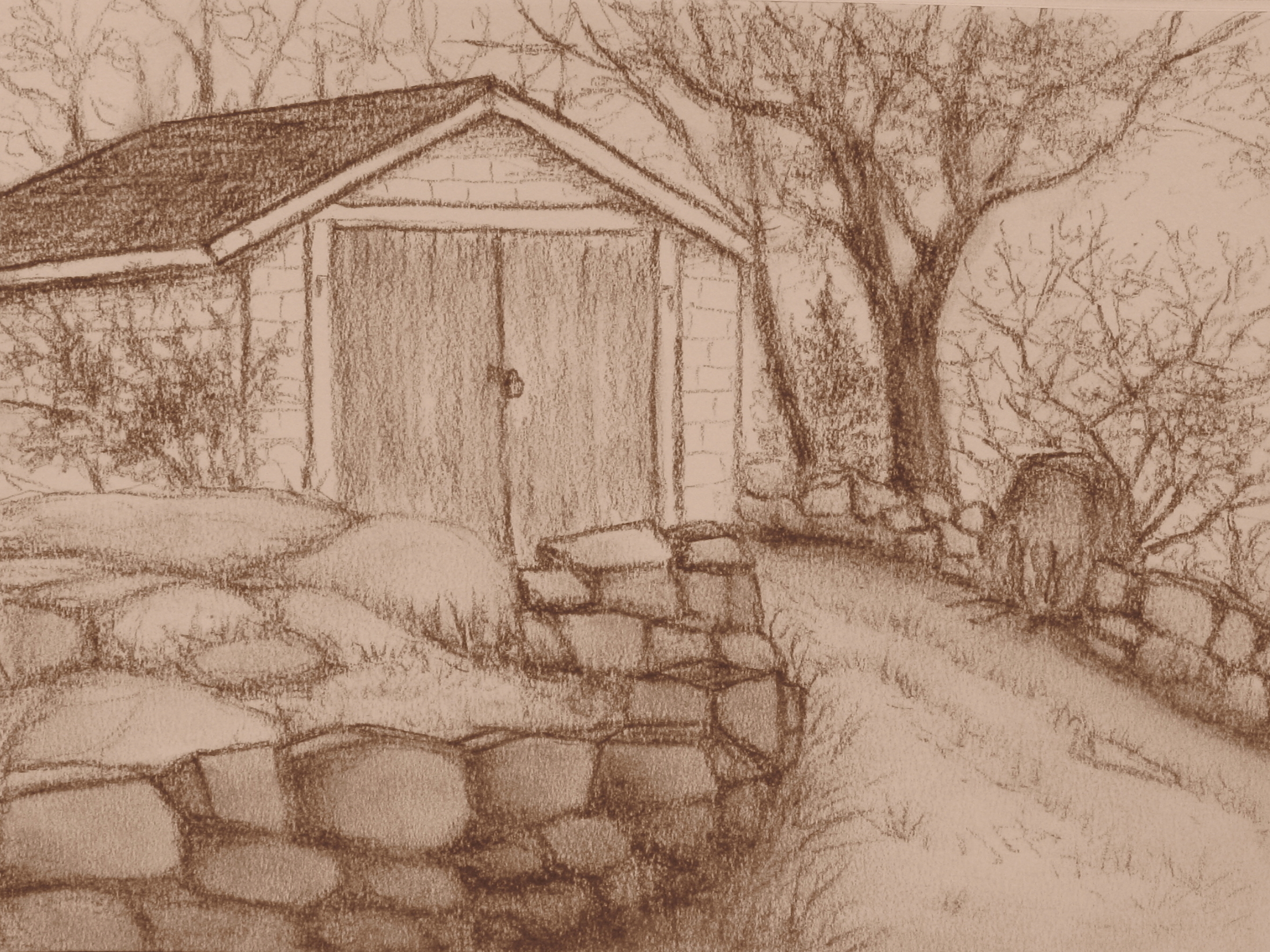 Shapley Rd. Summer House (conte pencil, 6″ x 8″)